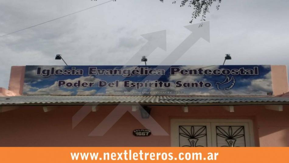 Contacto: Jose Riquelme 0223 154975037 4774237. Cartel frontlight realizado en caño y lona impresa full color. Iglesia Pentecostal.